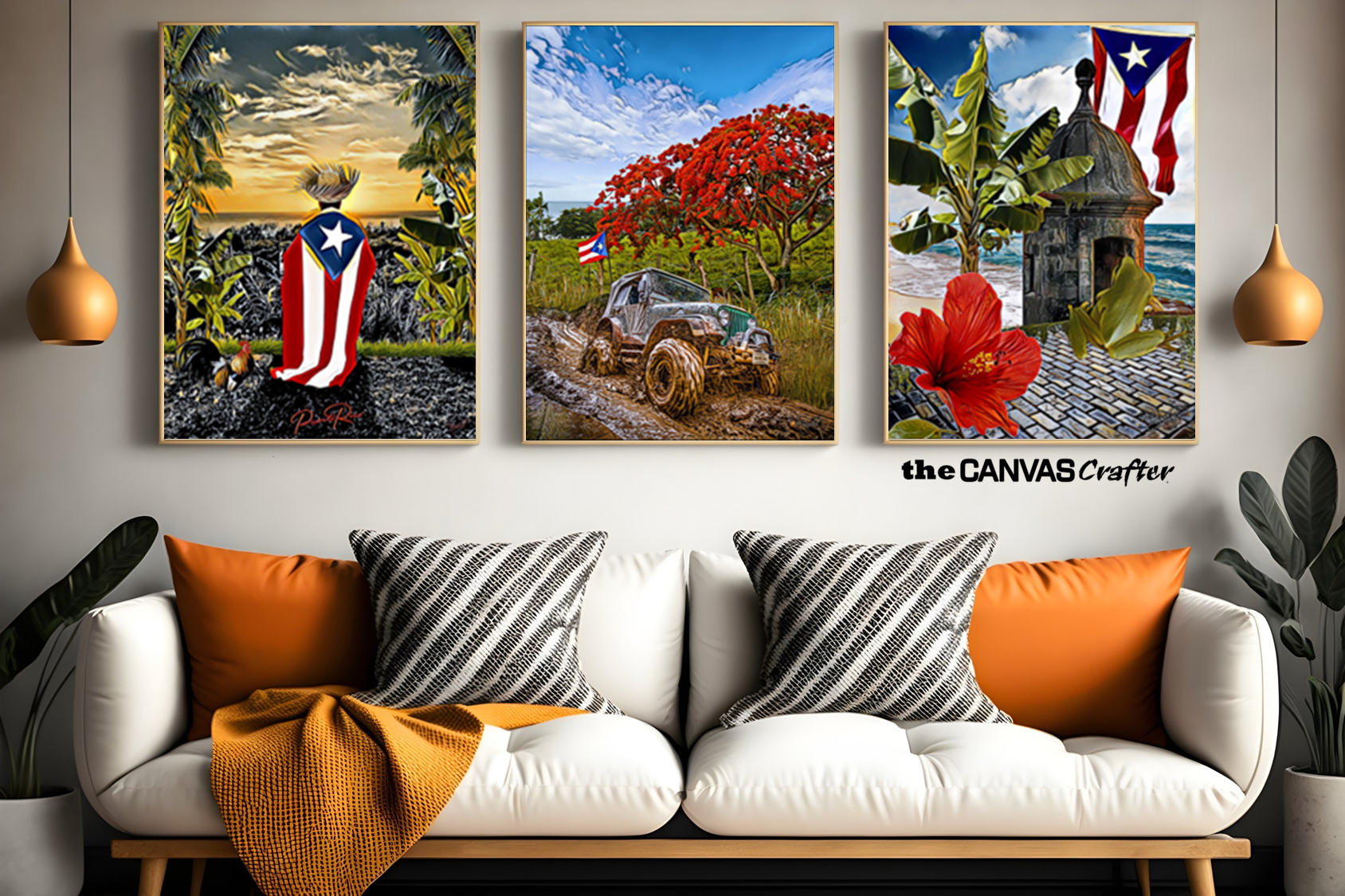 I was born in Puerto Rico, where the rhythm of the coquí, the scent of pan sobao, and the laughter of my people shaped my soul. My art is a tribute to that origin - a visual hymn to the memories, nostalgia, and history that define our island. Each painting begins with my hands and heart. I paint scenes that evoke the warmth of abuela’s kitchen, the vibrancy of street festivals, "Fiebru" is a Puerto Rican slang term for a car enthusiast or someone deeply passionate about a hobby. and the quiet dignity of our countryside. Once complete, the digital artwork is transferred onto a 100% cotton handmade canvas, stretched over a custom-built frame -crafted with the same care I put into every brush stroke. This isn’t mass-produced art. It’s a personal journey, printed and framed for you.