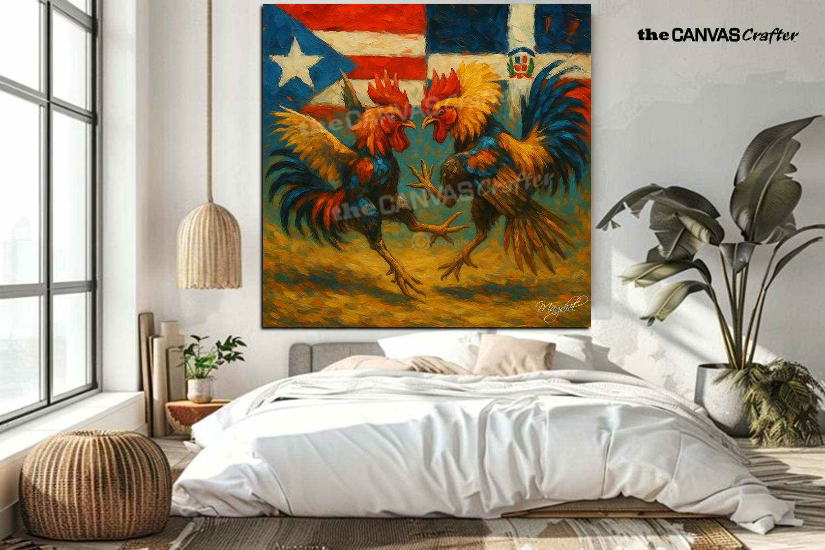 Step into a vibrant slice of Puerto Rican, In the rural mountains of central Puerto Rico, cockfighting is culture. It took root during Spanish colonial times. Preserved in stunning detail. This 12"x12" framed canvas captures a Cockfighting life in Puerto Rico. Every brushstroke evokes the warmth, rhythm, and resilience of Borinquen’s countryside. Perfect for lovers of Cockfighting in Puerto Rico, and soulful storytelling.